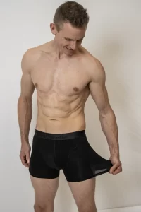 med bomuld og elasthan. Modellen sidder tæt til låret, tæt omkring rumpen og holder godt fast på de ædlere dele. Det er en bomuldsunderbuks uden gylp og vi har den i sort og hvid. Den samme model fåes som bambus underbukser, så foretrækker du bambus bør følge link’et til dem i stedet.